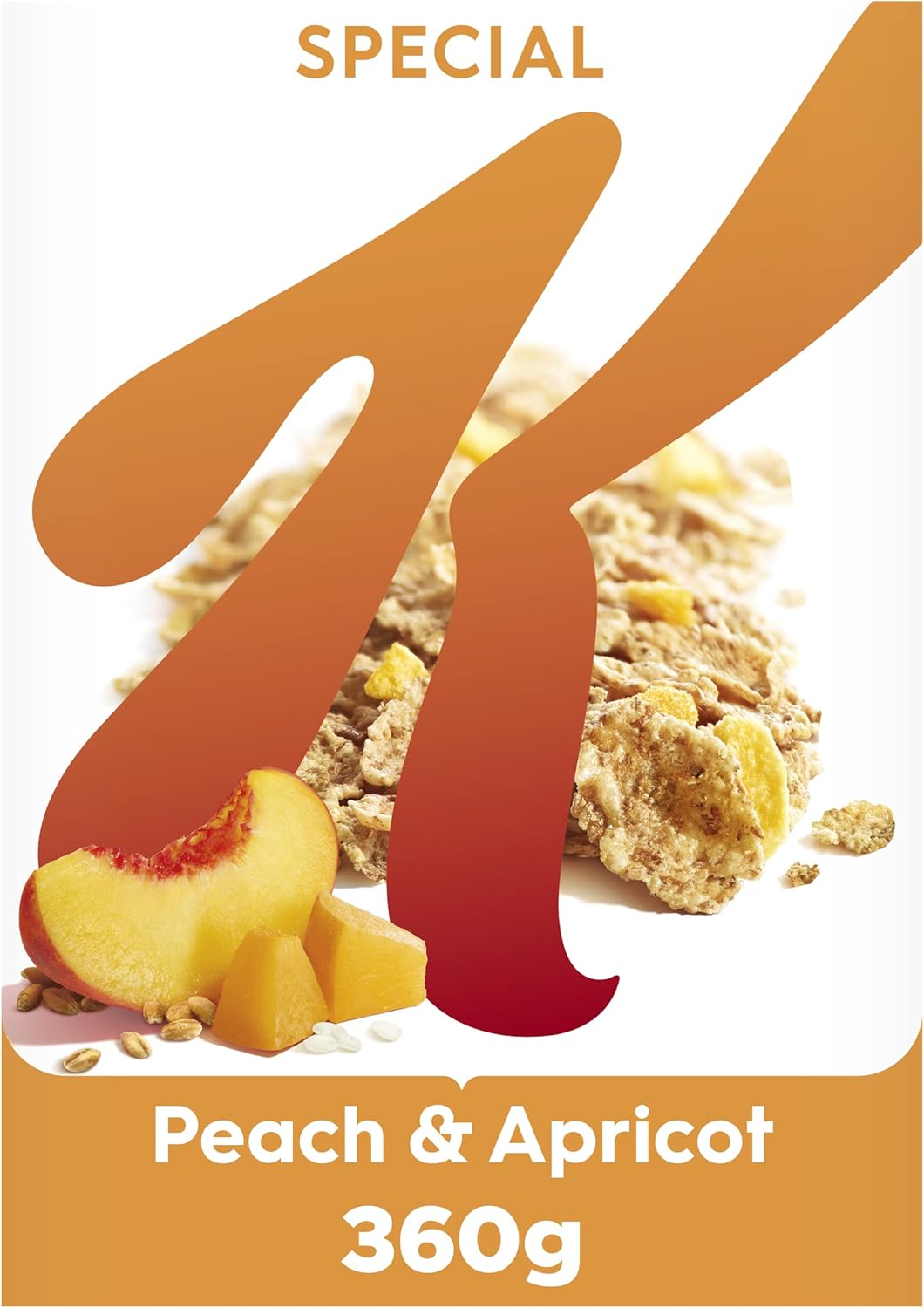 Rice (45%), wholewheat (35%), sugar, sweetened freeze-dried fruits (5%) (peach, apricot, sugar), barley (4.5%), malted barley flour, barley malt extract, salt, niacin, iron, riboflavin, thiamin, vitamin B6, folic acid, vitamin D, vitamin B12.