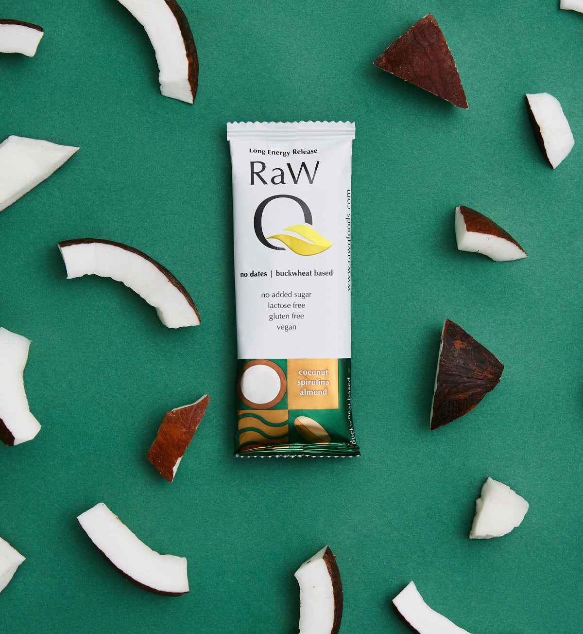 Raw Q Vegan Long-Lasting Energy Coconut Spirulina Almond Bar 40g - Short Dated