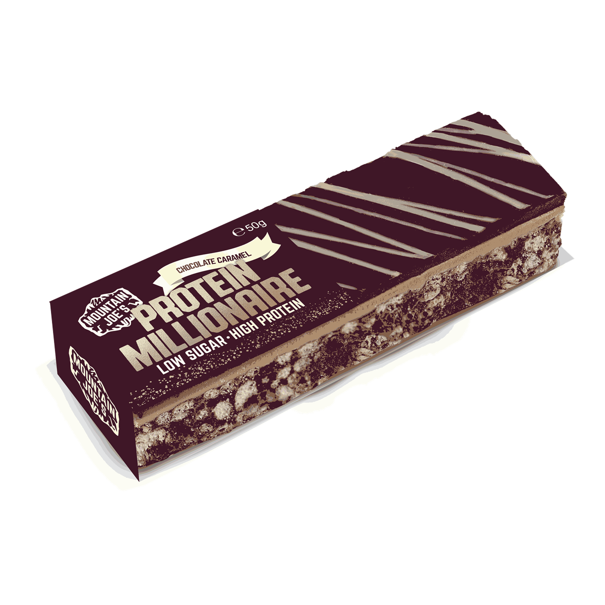 Mountain Joe's Protein Millionaire in Chocolate Caramel flavour. Containing less than 200 calories, packed with protein and less than 2g sugar this is the perfect guilt free treat